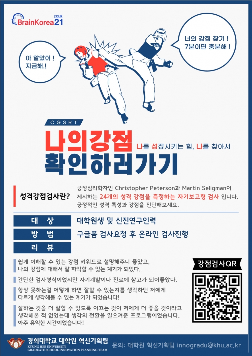 대학원혁신기획팀에서 대학원생에게 eDICS 및 강점검사 를 지원하고 있습니다.