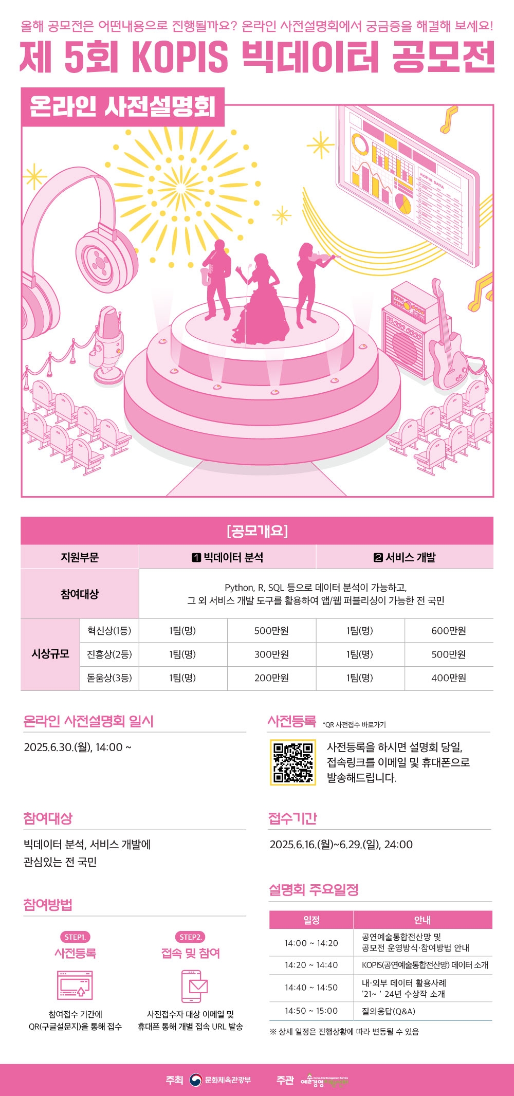 [홍보][예술경영지원센터] 6/30(월), 제5회 KOPIS 빅데이터 공모전 사전설명회 개최 안내