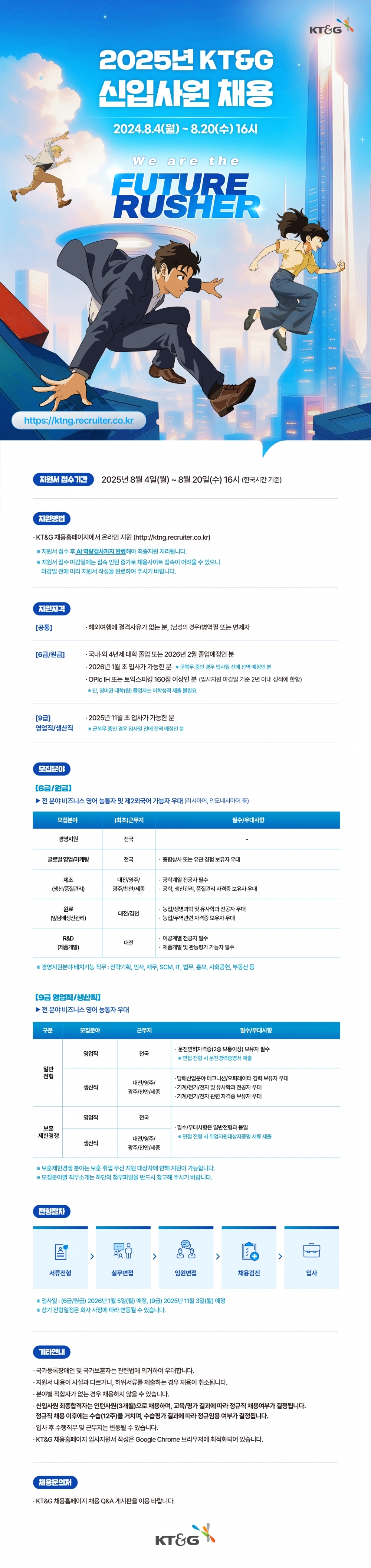 [홍보] [KT&G] 2025년 KT&G 신입사원 채용 (~8/20)