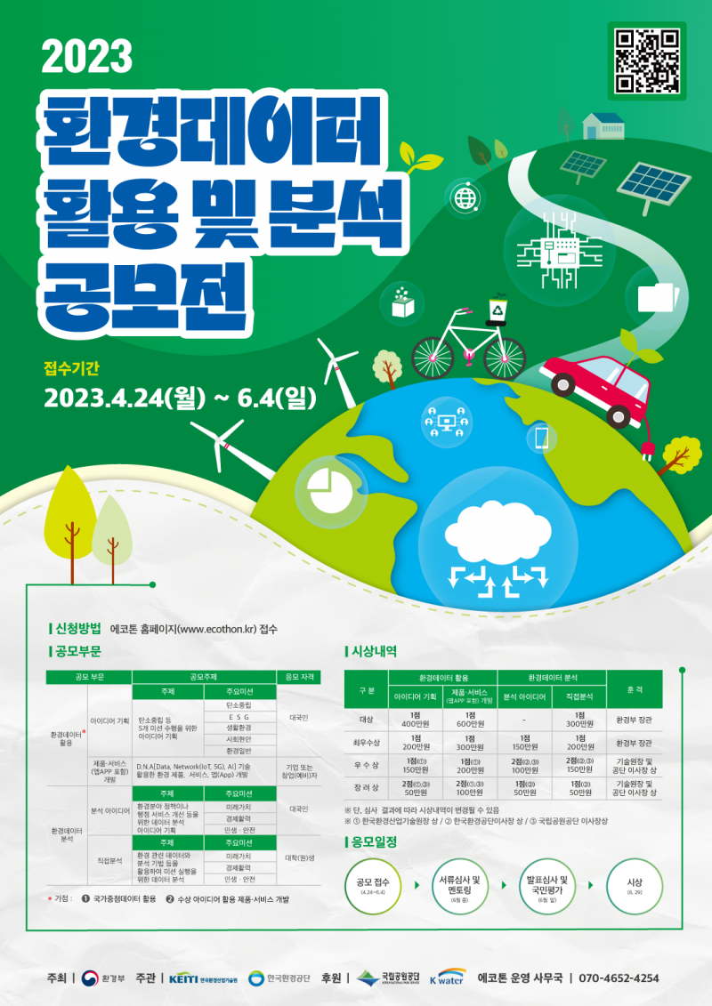 2023년도 환경데이터 활용 및 분석 공모전 참가자 모집 중에 있습니다.