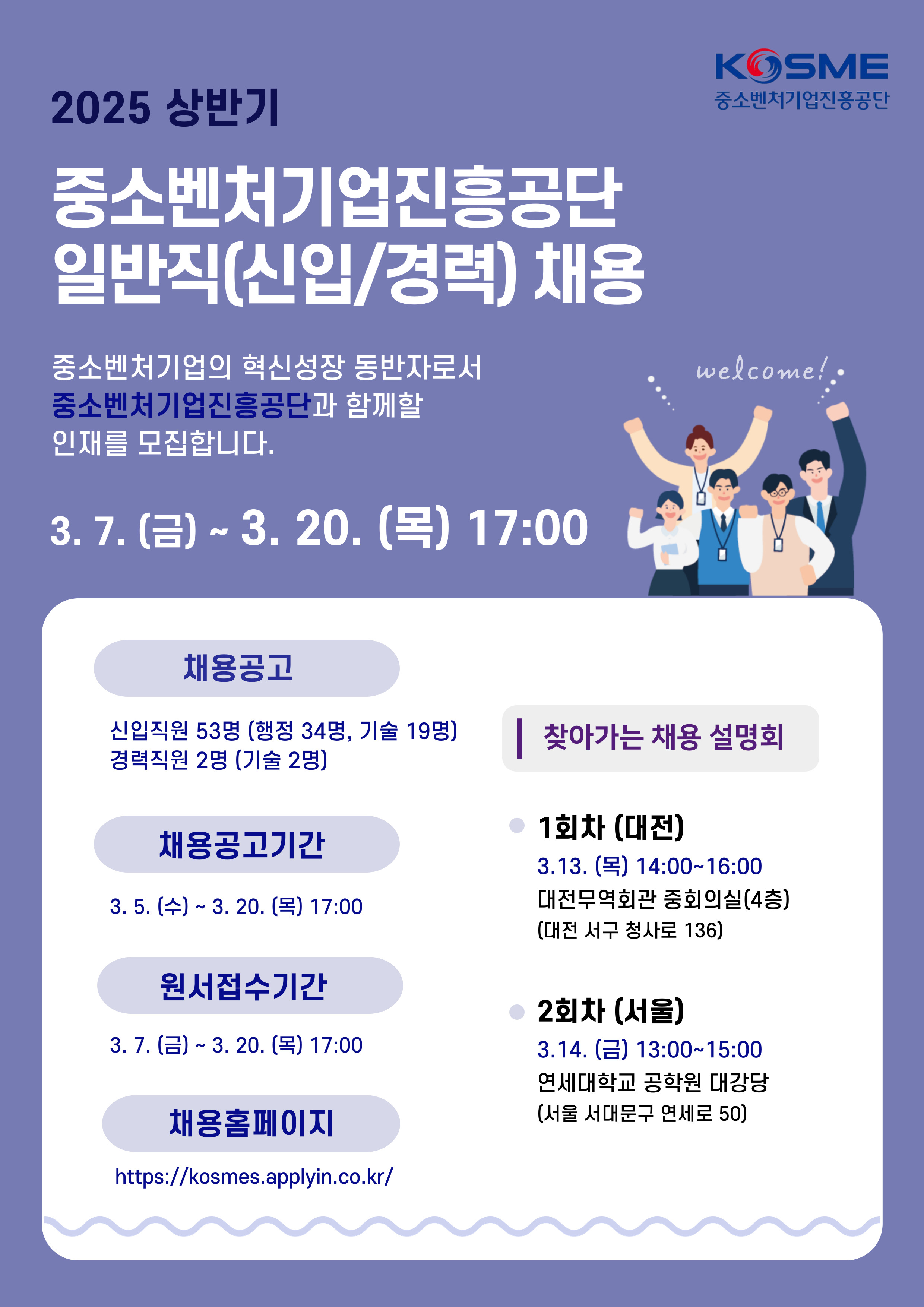[공통] [중소벤처기업진흥공단] 2025년 상반기 중소벤처기업진흥공단 일반직 (신입/경력) 채용 찾아가는 채용 설명회