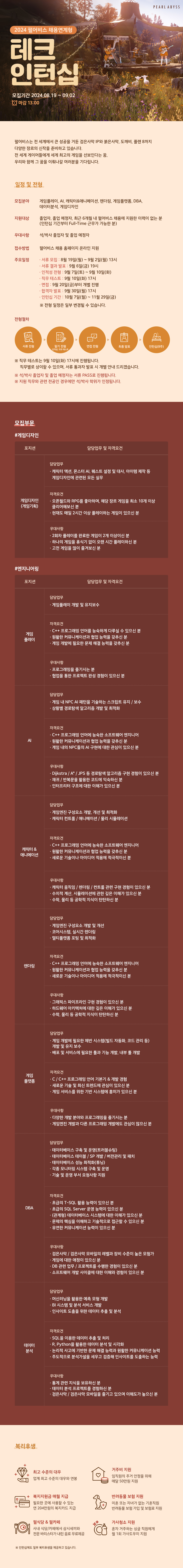 [펄어비스] 2024 펄어비스 채용연계형 여름 인턴십 모집(~9/2(월))