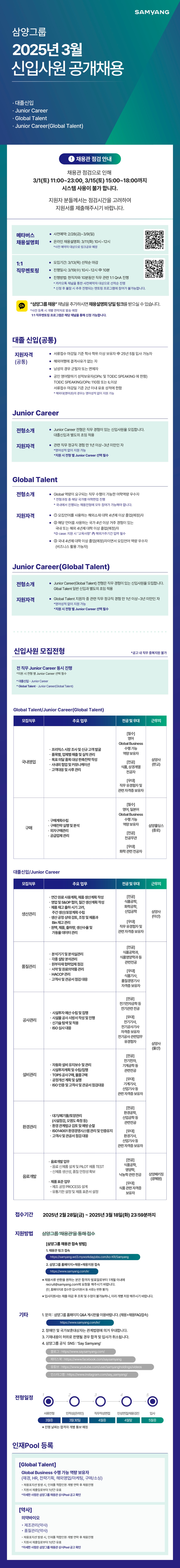 [삼양그룹] 2025년 3월 삼양그룹 신입사원 수시채용 모집(~3/18(화)) 23:59시까지)