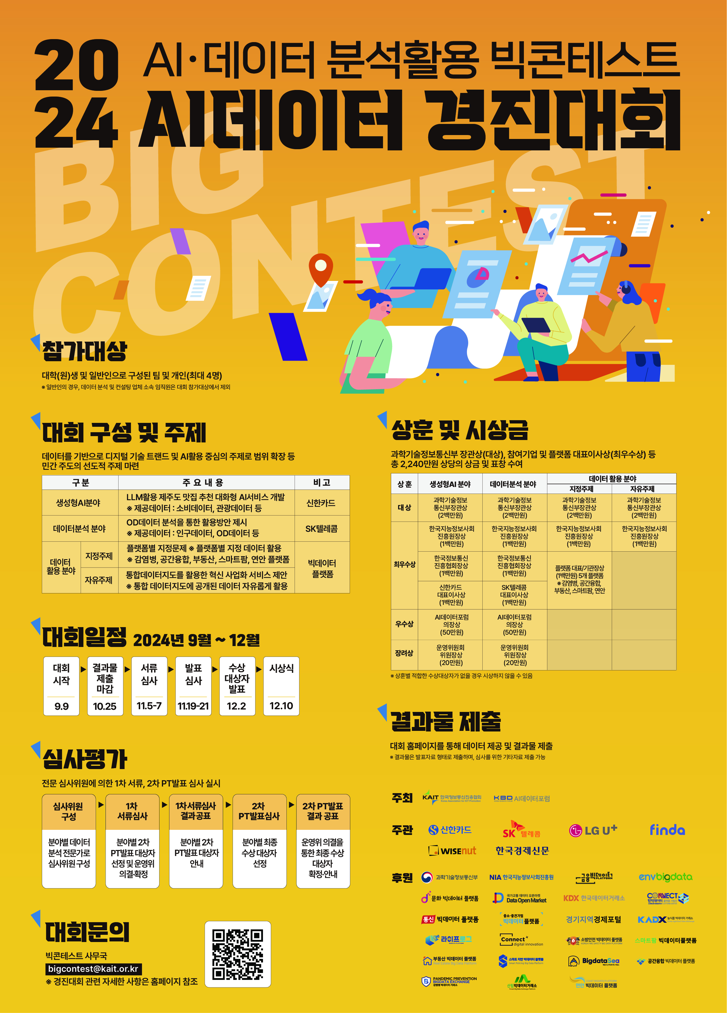 참가자들의 데이터 분석 및 활용 능력을 겨루는 국내 최대 규모의 데이터 분석 경진대회입니다.