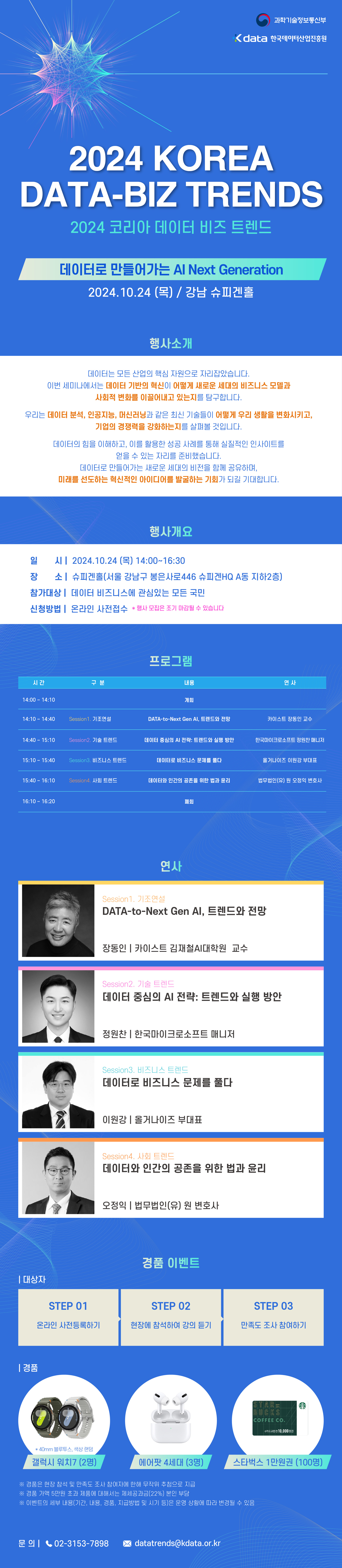 - 행사 일정 / 장소 : 2024.10.24(목) 13:00~16:30 / 강남구 슈피겐홀 B2