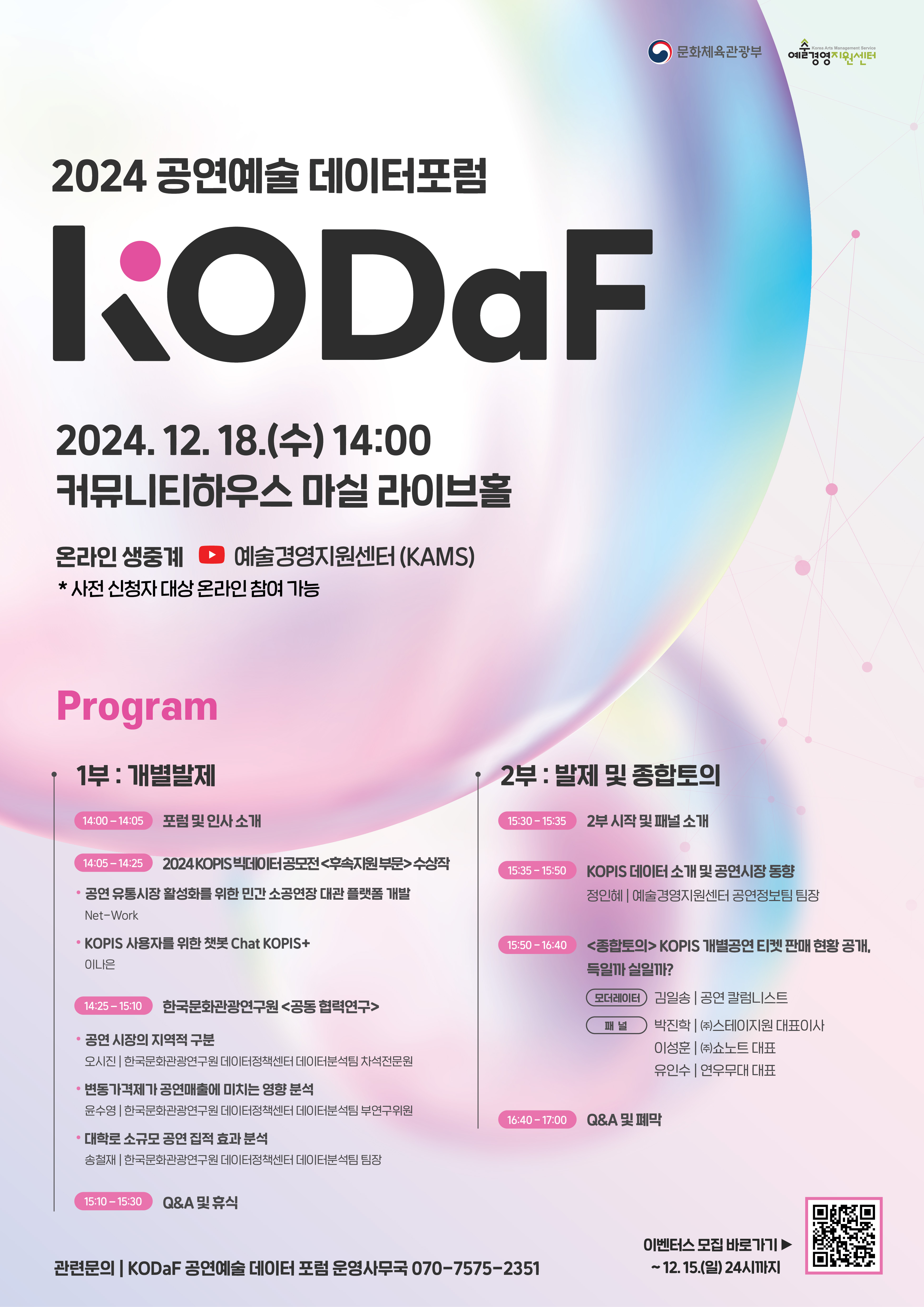 문화체육관광부와 (재)예술경영지원센터가 주관하는 2024 공연예술 데이터 포럼 KODaF를 안내드립니다.