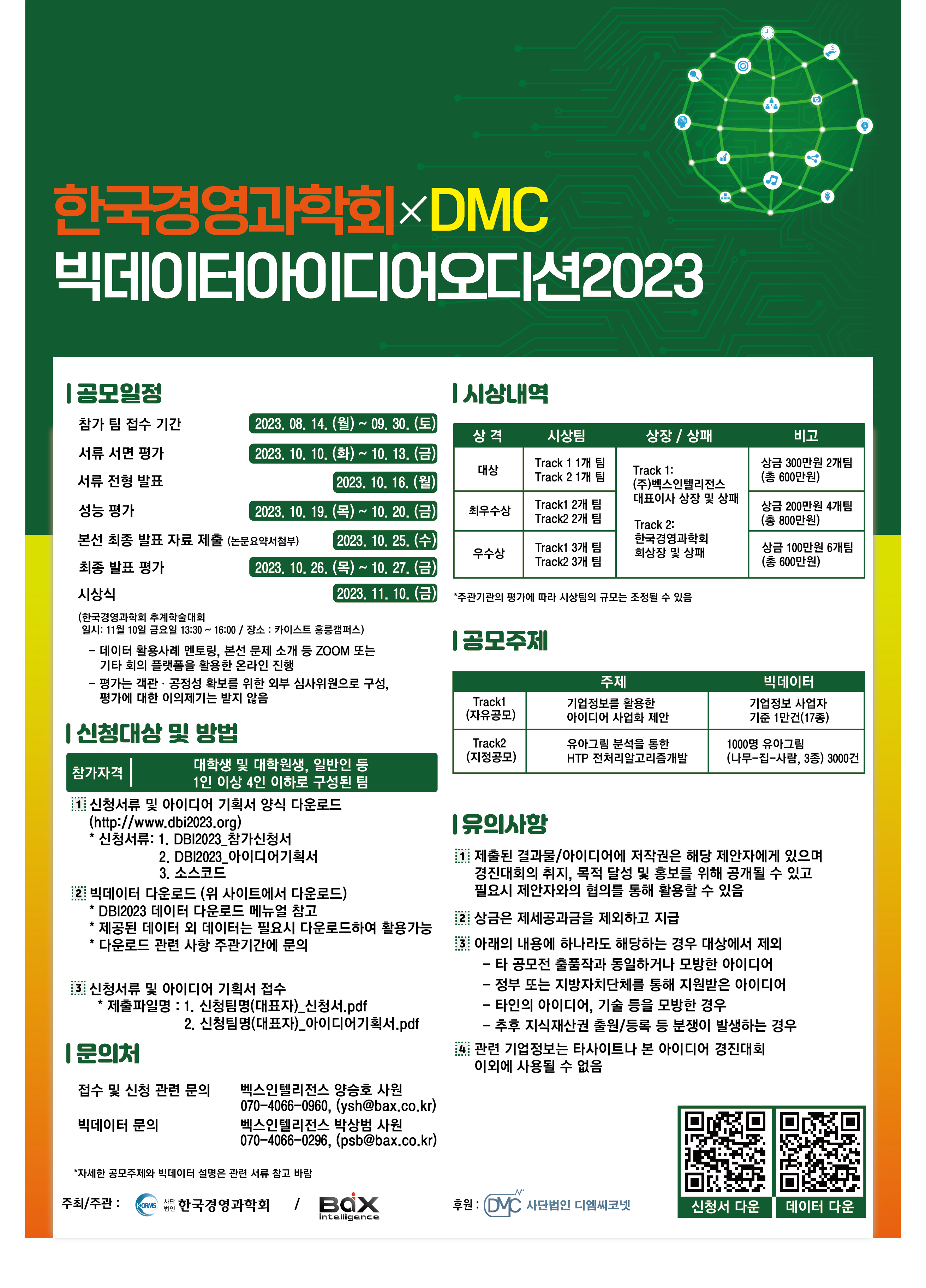 * 2023년 DMC 빅데이터 아이디어 오디션 [DBI2023] 참가자 모집 공고 *