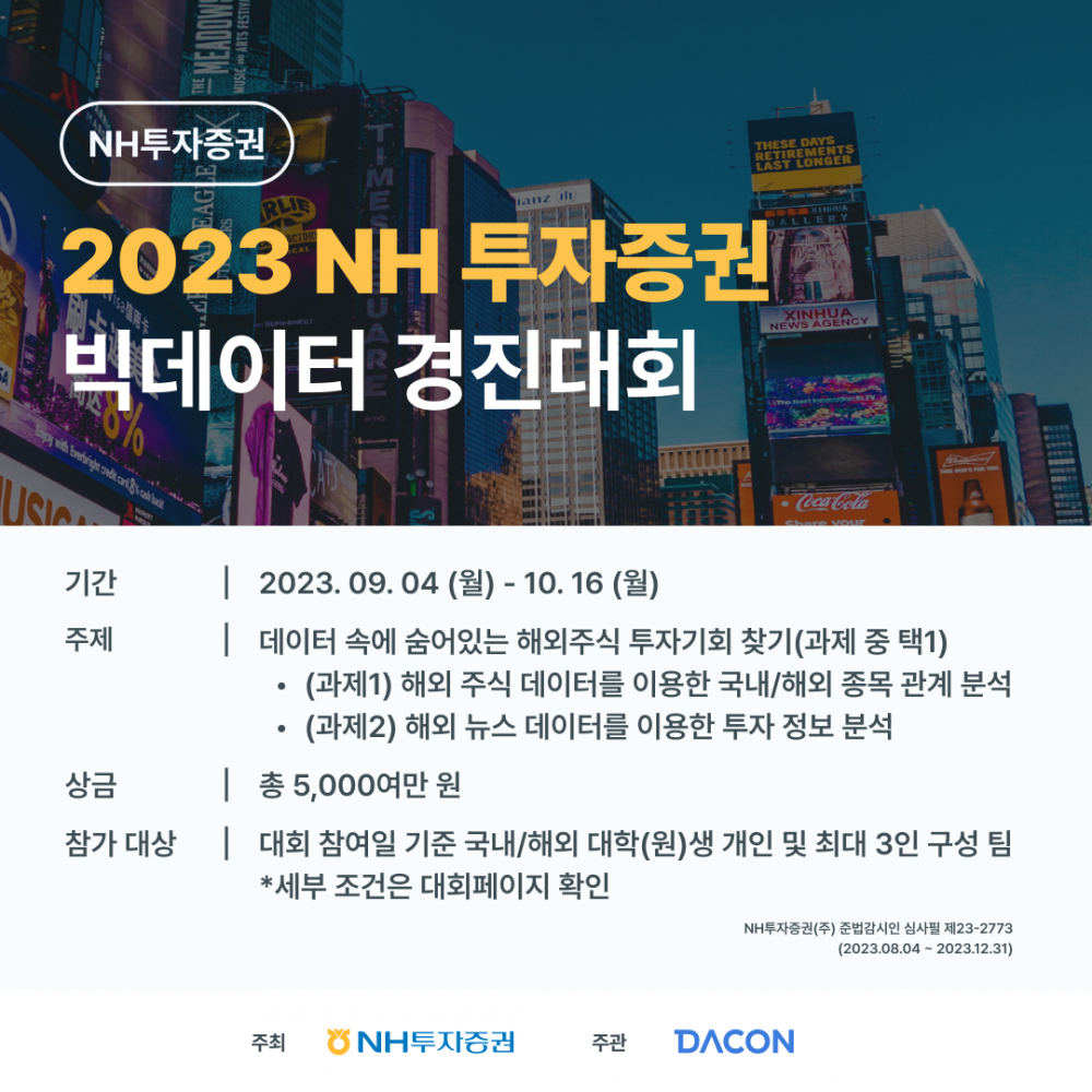DACON과 NH투자증권, HD한국조선해양에서 경진대회를 진행하여 안내드립니다.