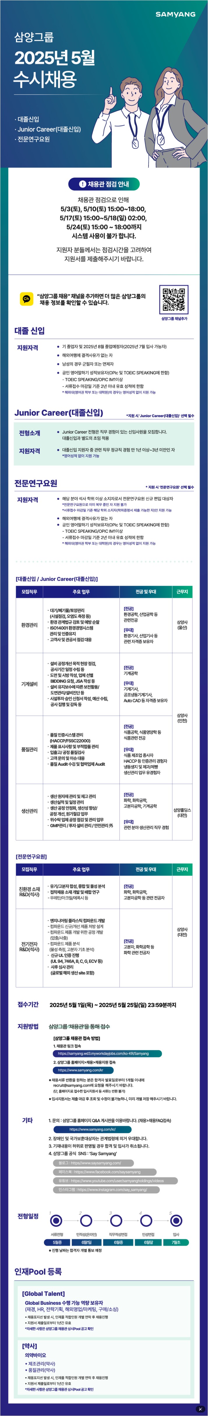 [공통] [삼양그룹] 2025 5월 수시채용(엔지니어/전문연구요원)