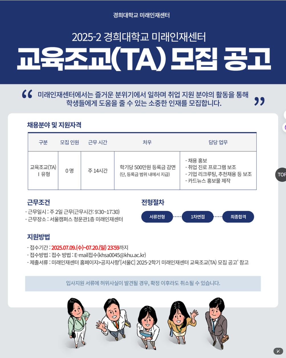 [서울] [서울C] 2025-2학기 미래인재센터 교육조교(TA) 모집 공고