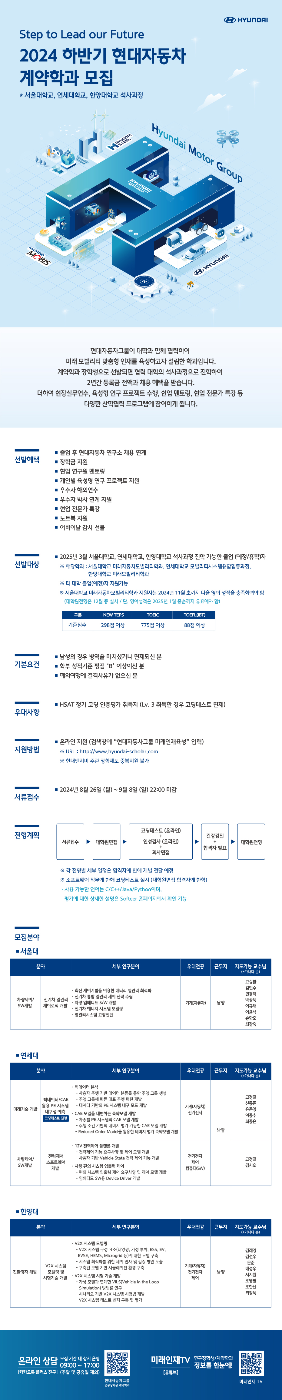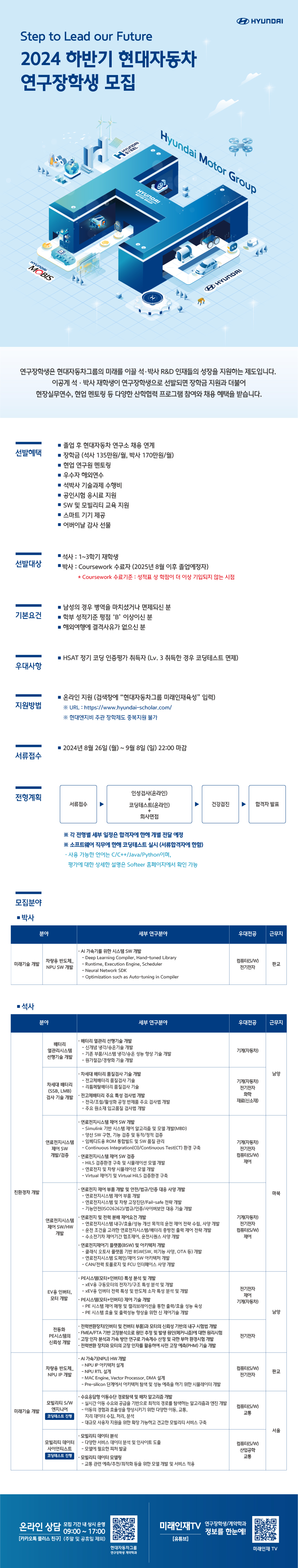 2024 하반기 현대자동차 연구장학생 및 계약학과 모집