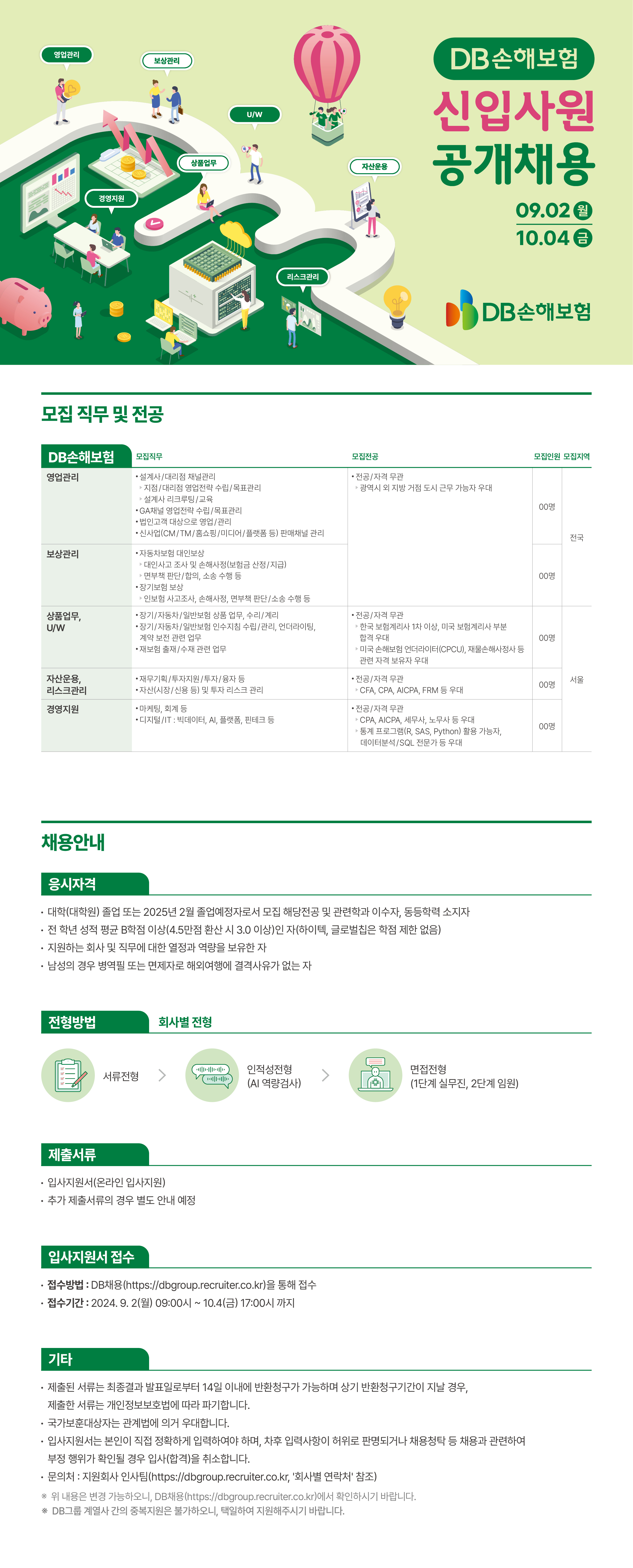 ※ 위 내용은 변경 가능하오니, DB채용 (https://dbgroup.recruiter.co.kr)에서 확인하시기 바랍니다.