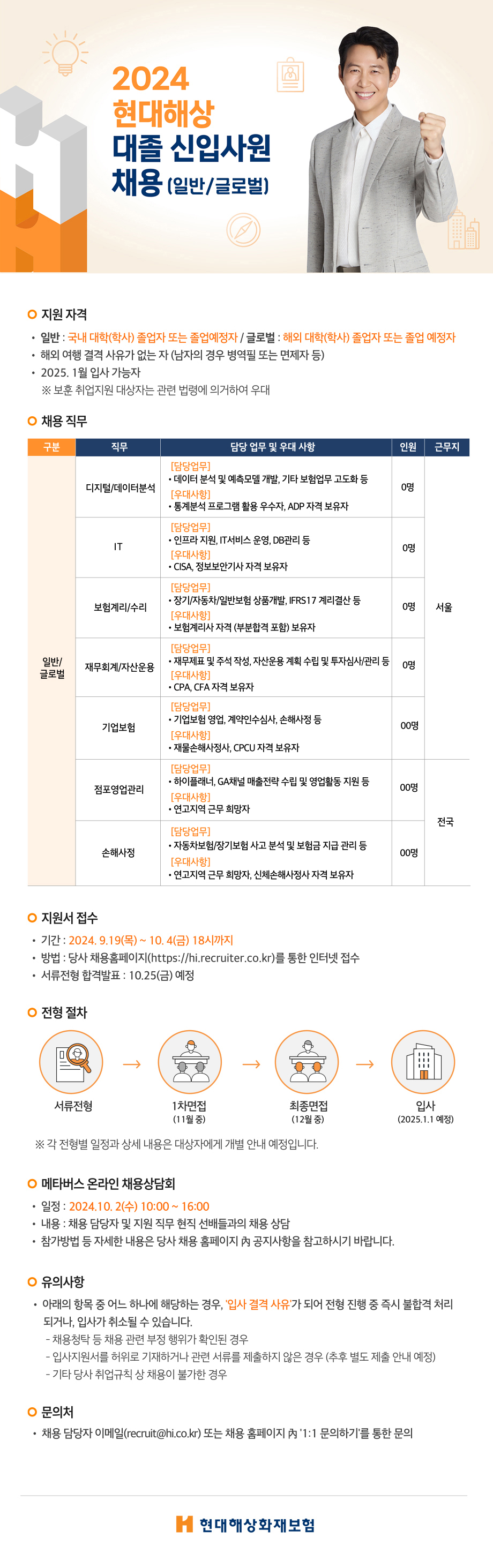 [현대해상] 2024 현대해상 대졸 신입사원 채용 (일반/글로벌) (~10/4(금)18:00까지)