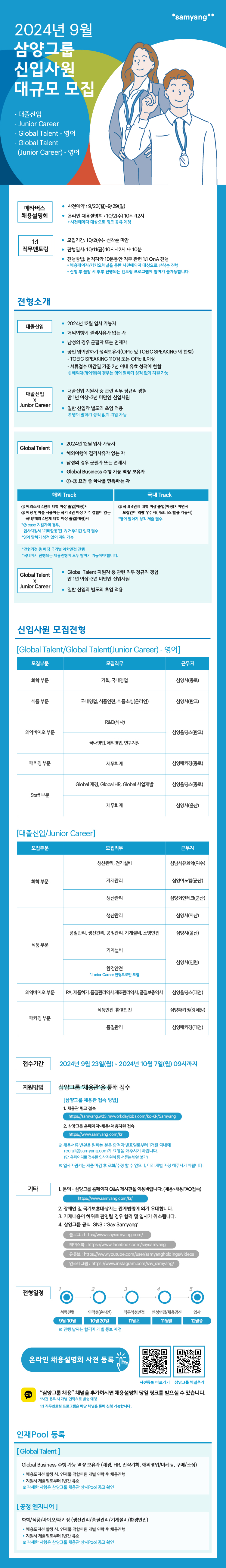 [삼양그룹] 2024년 9월 신입사원 대규모 모집 (~10/7(월) 09시까지)