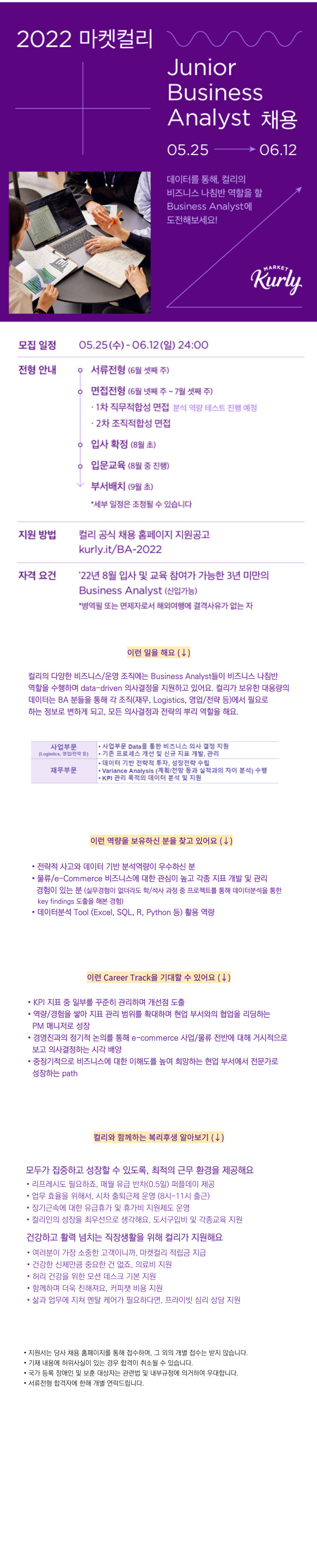 [마켓컬리] Business Analyst 채용공고(~2022.06.12)
