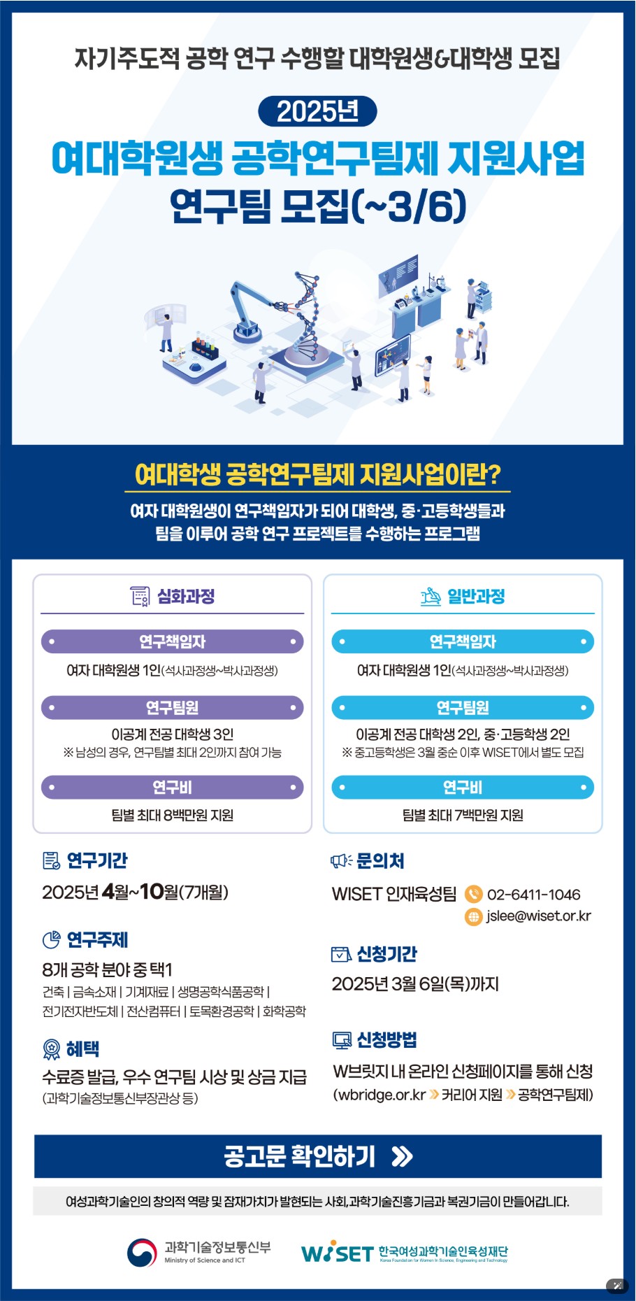 * 사업 신청페이지 및 공고문 바로가기(과정별 클릭): https://bit.ly/wiset2025teams